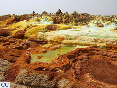 Sulphurous salt spring at Dallol volcano, Danakil depression, Ethiopia