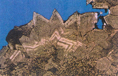 Fracture-related dolomite with “zebra” texture (grey bands ~1 cm thick)